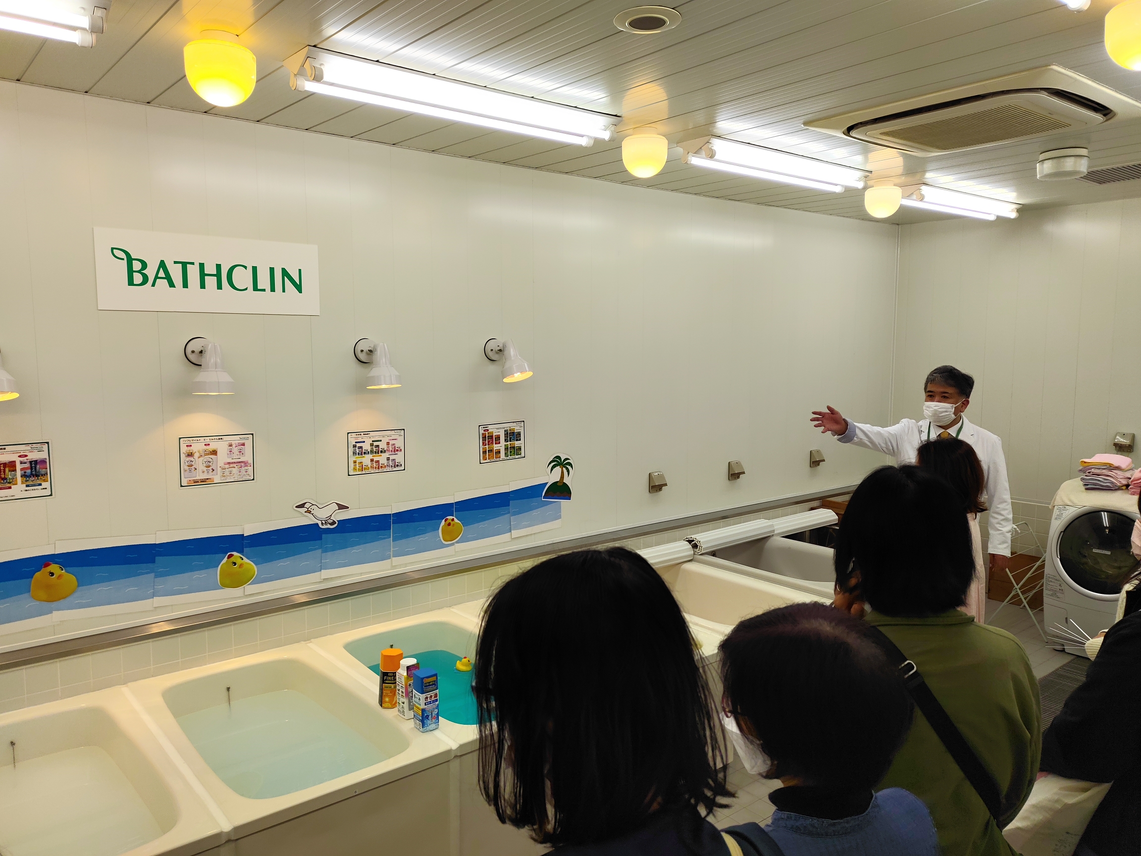 の施設見学を行い、実際に湯ざわりや香りなど入浴剤について体験しました。