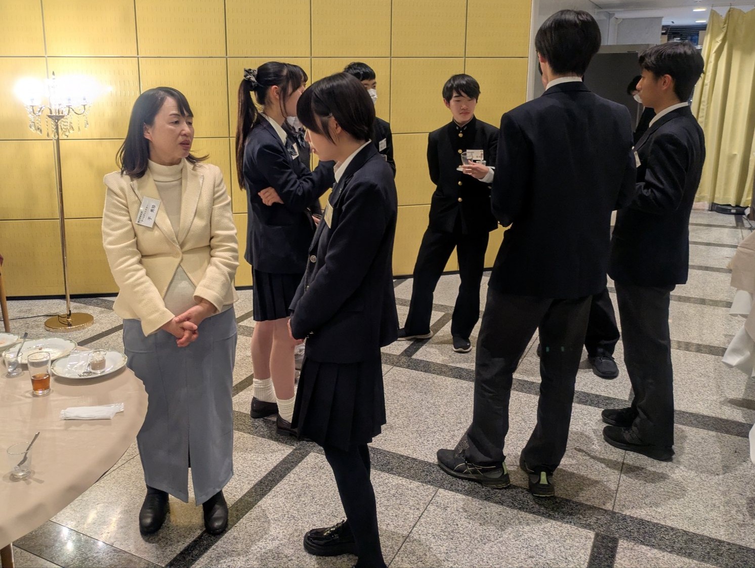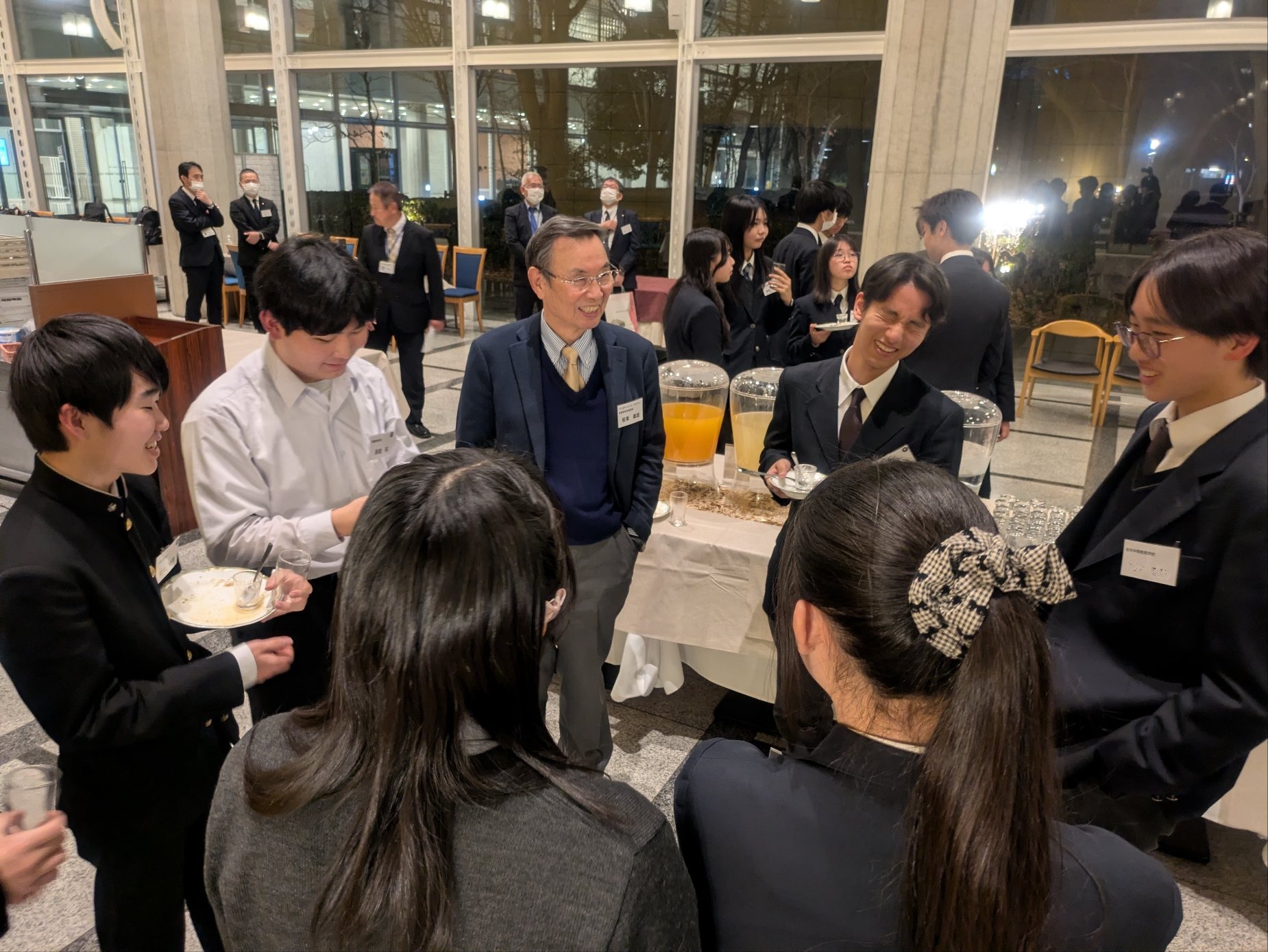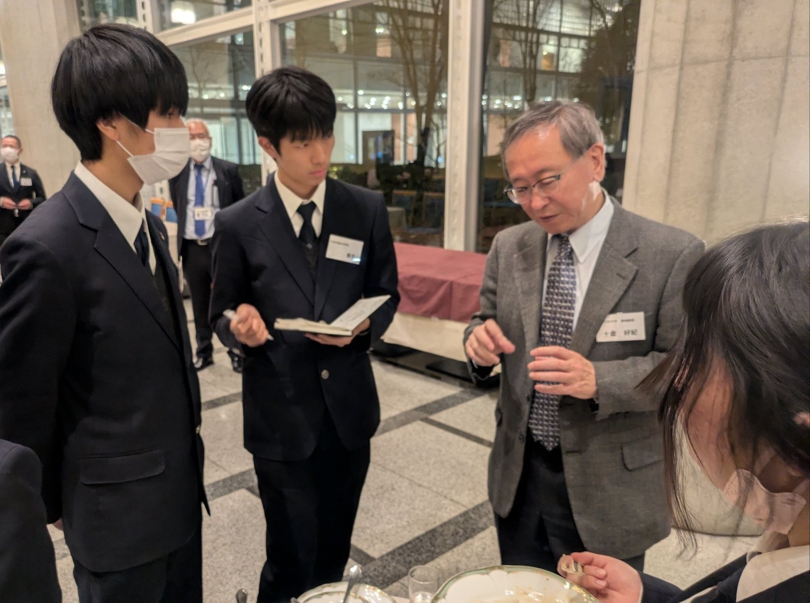 第2部の「交流会」では、十倉先生、于先生、つくばサイエンス・アカデミーの板東義雄総務委員長、協賛企業である関彰商事株式会社の関正彬取締役も交流に加わり、和やかな雰囲気の中で科学や研究について語り合いました。